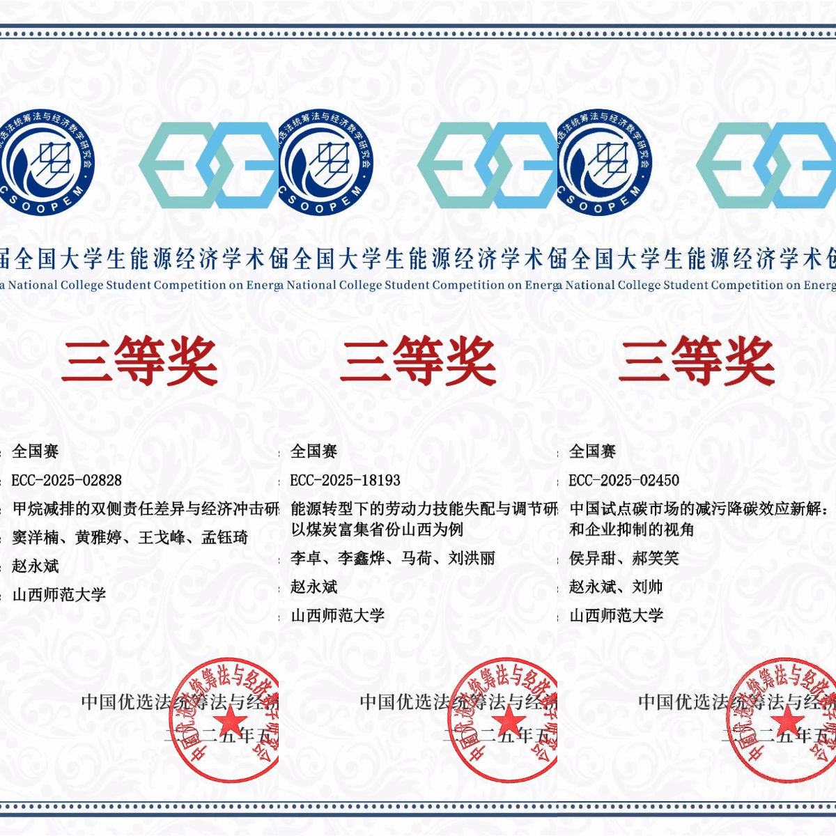 5月25日第十一届能源经济学术创意大赛正式落幕,我校学子抱着学习与交流的心态积极参加,最终斩获国家级三等奖3项,我校被评为“优秀组织单位”。
