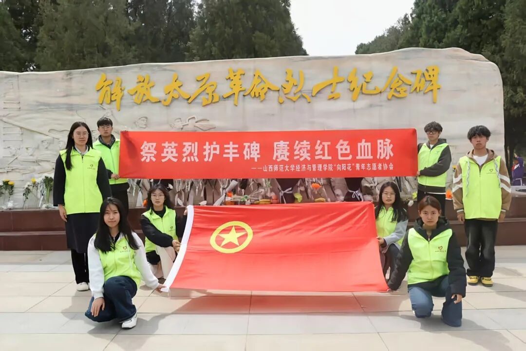 为缅怀革命先烈,弘扬爱国主义精神,我院“向阳花”青年志愿者协会于4月4日赴太原市双塔革命烈士陵园,开展“祭英烈护丰碑, 赓续红色血脉”清明祭扫活动。