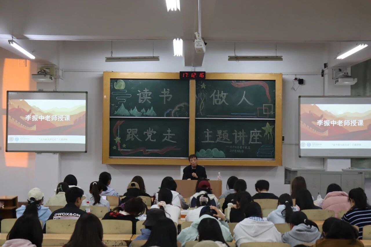 11月2日下午4:30,我院在南区5310教室举办了“读书做人跟党走”主题讲座。讲座特邀李振中老师主讲,120名25级学生参加了本次活动。