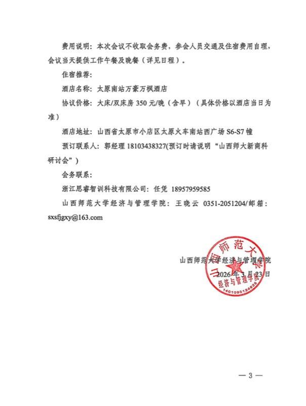 为深入贯彻落实2025年《国务院关于深入实施“人工智能+”行动的意见》及《教育强国建设规划纲要(2024—2035年)》精神,紧密对接中央教育工作领导小组《高等教育学科专业设置调整优化行动方案(2025-2027年)》中关于“强化人工智能赋能教育教学”及“实施急需学科专业超常布局行动”的战略部署,围绕2026年国家“十五五”规划开局与数字经济创新发展的重点任务,推动人工智能技术与商科教育深度融合,深化产教融合协同育人,提升数字经济人才培养质量,更好服务区域经济社会高质量发展,在全国数字经济专业学位研究生教育指导委员会指导下,由山西师范大学经济与管理学院承办的“智汇数字新经济,融创人才新未来”新商科人才培养与高质量发展研讨会,定于2026年4月10日-11日在山西太原召开。